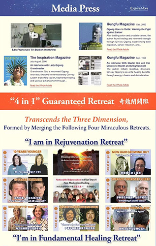 The Qinway Renowned Retreat System is a collection of China's top thousand-year-old Taoist secret healing techniques that have been modernized! This unique program has had 20 years of successful experiences in the United States, and rejuvenation is evident in just a few days!